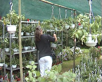 left: Fuchsias for sale; right: Fuchsia books and "lore" at the stand of the Dutch Fuchsia Society.