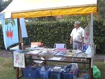 links: Verkoop van fuchsia's, en rechts: Fuchsiaboeken en "Fuchsia-lore" bij de NKvF-kraam