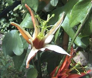 left: Passiflora aurantia; right: Passionflower 'Byron Beauty'.