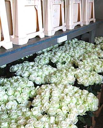 die men per stuk of per gewicht kon kopen. Men kweekte er ook bloemen, die werden gedroogd en verkocht in droogboeketten of per stuk. Hierboven een paar voorbeelden van de bloemen, links vers gesneden witte rozen, en rechts