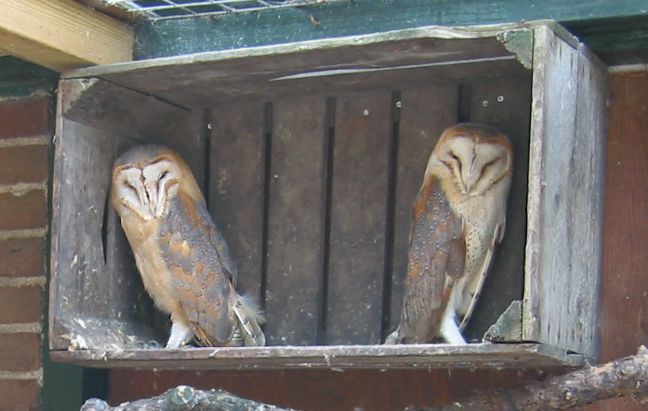Ze heetten Julius en Cleopatra, stond er op een bordje. Er waren verscheidene afgerichte roofvogels, waar op bepaalde dagen ook een show mee werd gegeven, maar op deze dag bleven ze in hun hokjes.