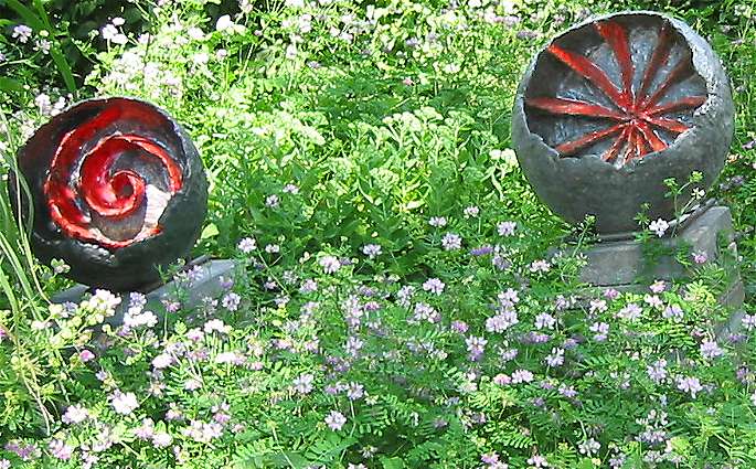 Outside I saw a few abstract objects of art amidst a field of Crown vetch, a wild-growing plant that is found often in France, e.g. on roadsides, but it occurs only rarely in the Netherlands, our climate probably isn't quite warm enough.