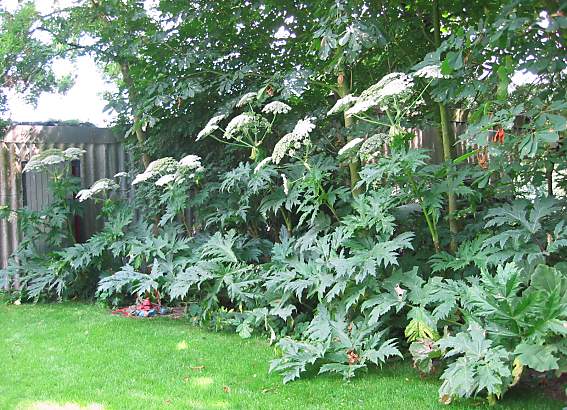 Metershoge reuzenbereklauwen, berucht om het bijtende sap dat hun bladeren en stengels afscheiden