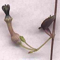 Het Chinees lantarentje, dat helemaal niet uit China maar uit Natal, Z. Afrika afkomstig is, is een ijl plantje met kleine dikke blaadjes aan lange dunne stengels. Het heeft heel weinig water nodig. Het vormt knolletjes aan de stengels, die wortel schieten als ze grond raken; soms raken ze ook weleens iets anders waarin ze menen te kunnen groeien, zoals op de foto's hieronder te zien is - één knolletje heeft zich muurvast verankerd in een rotan plantenstandaard.