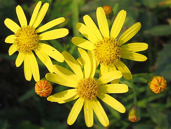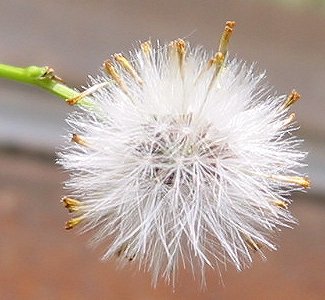 | De bloem wordt binnen een week gevolgd door het karakteristieke zachte kruiskruidpluisje, met heel fijn lichtgrijs haar waaraan de plant z'n Latijnse naam Senecio (= grijsaard) te danken heeft. | Within a week the flower is followed by the characteristic Ragwort-fluffball with its fine lightgrey hair, for which the genus got the latin name Senecio, meaning greybeard. |